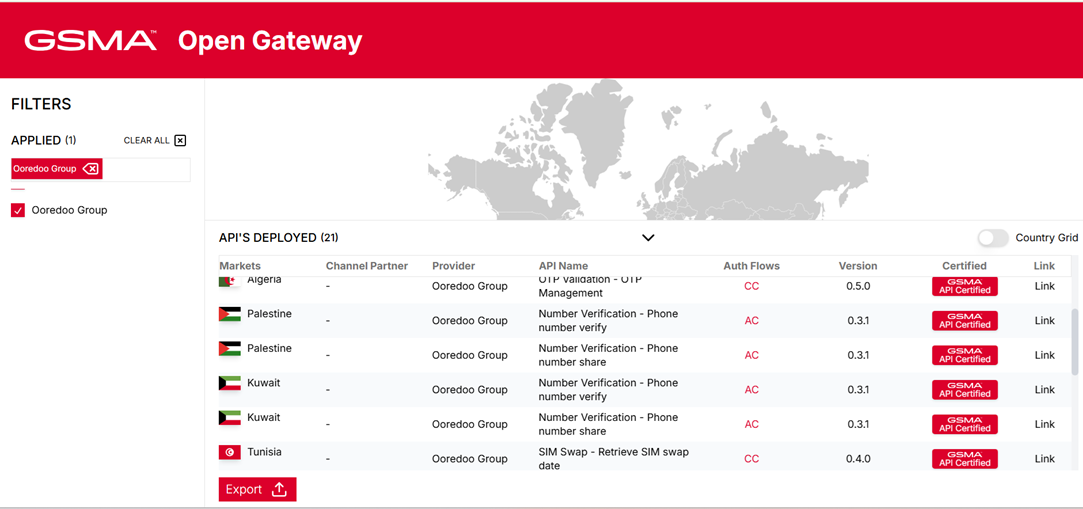 Below are the listed Ooredoo GSMA API certificates. To view more Ooredoo GSMA API certificates, please visit the webpage by clicking here